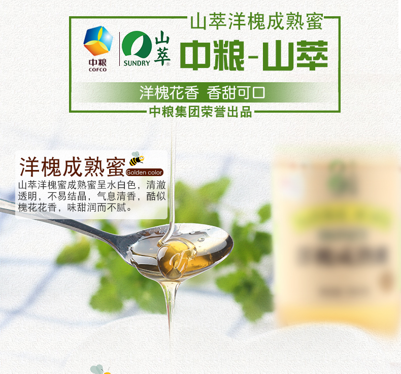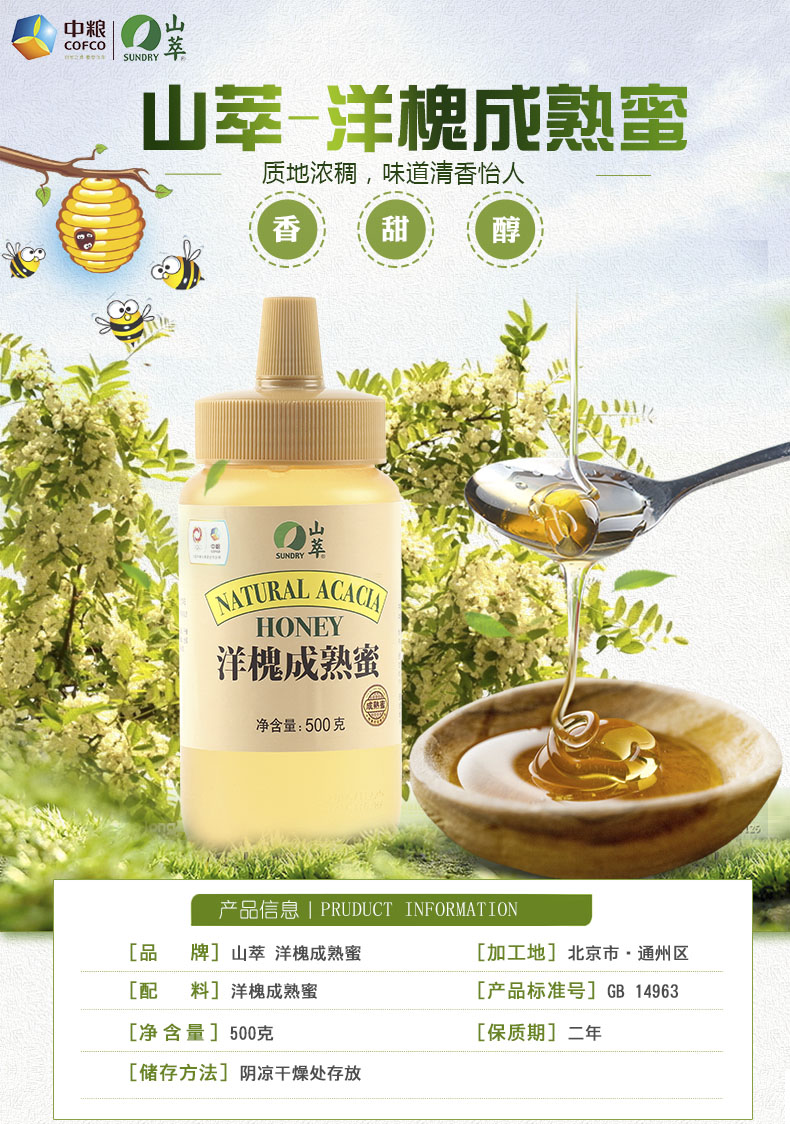 中粮集团山萃洋槐成熟蜜500g瓶装
