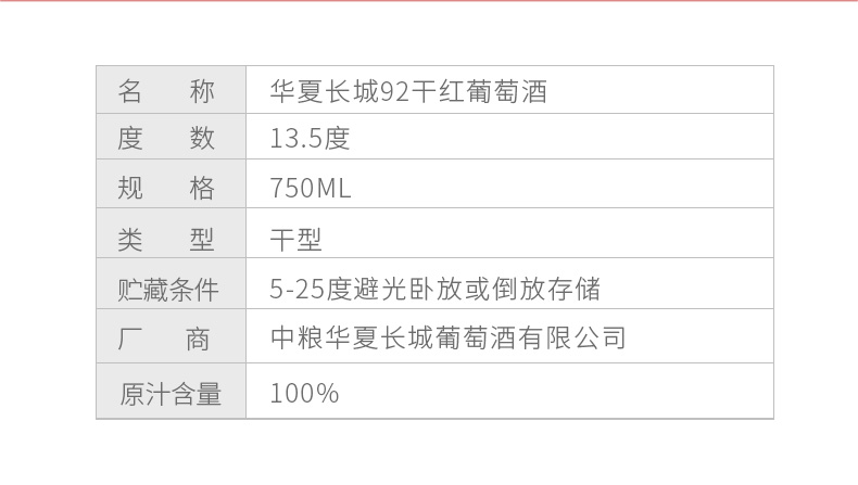 产品名称:Great Wall/长城 华夏特选...