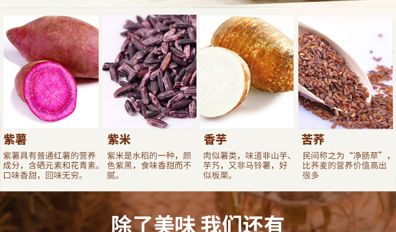 配料表:紫薯,紫米,香芋等,详见包装。