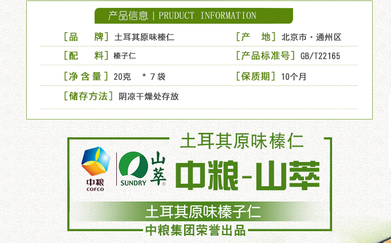 中粮山萃土耳其原味榛仁20g*7袋 原味榛子仁坚果零食