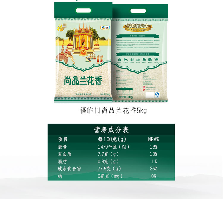福临门 尚品兰花香5kg 米香浓郁 泰国米
