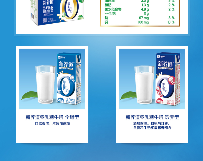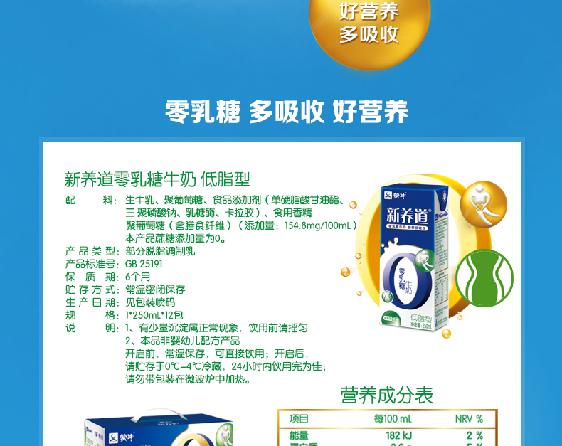 产品名称:蒙牛 新养道零乳糖低脂型