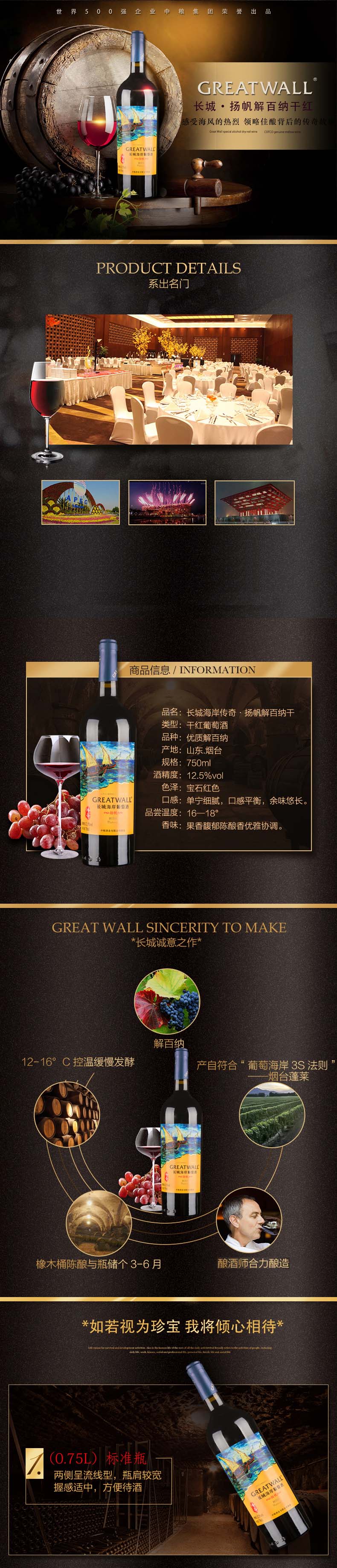 长城海岸传奇扬帆解百纳干红葡萄酒