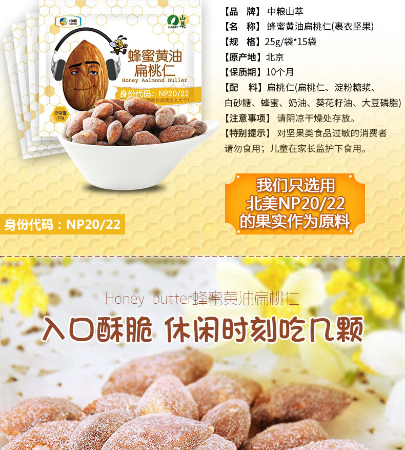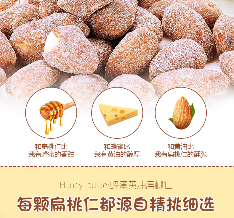 配料表:扁桃仁(扁桃仁、淀粉糖浆、白砂糖、蜂蜜、奶油、葵花籽油、大豆磷脂)