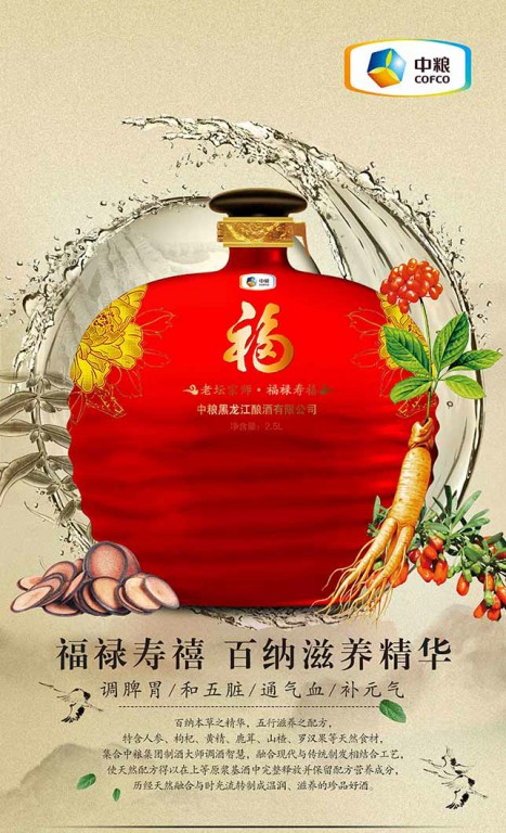配方:水,白酒,人参,黄精,黄芪,枸杞,生地,当归,首乌,五味等。