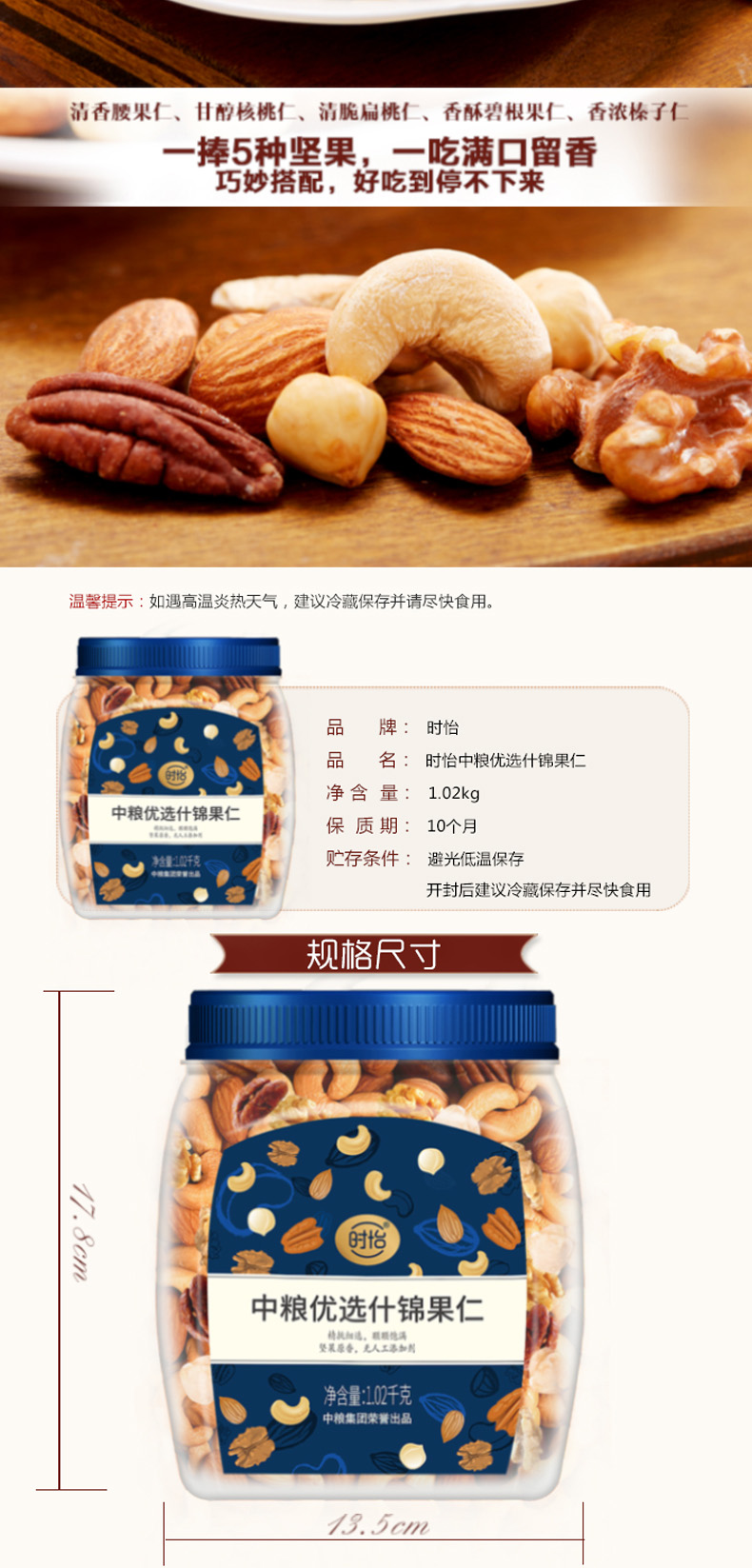 中粮时怡优选什锦果仁原味1.02KG*2罐 5种坚果