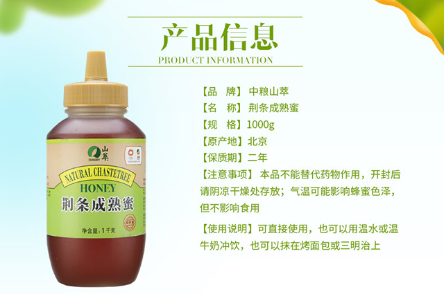 中粮山萃荆成条成熟蜜1kg瓶装 天然成熟蜂蜜