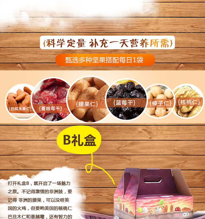 巴旦木仁、葡萄干、腰果仁、蓝莓干、夏威夷果仁、核桃仁