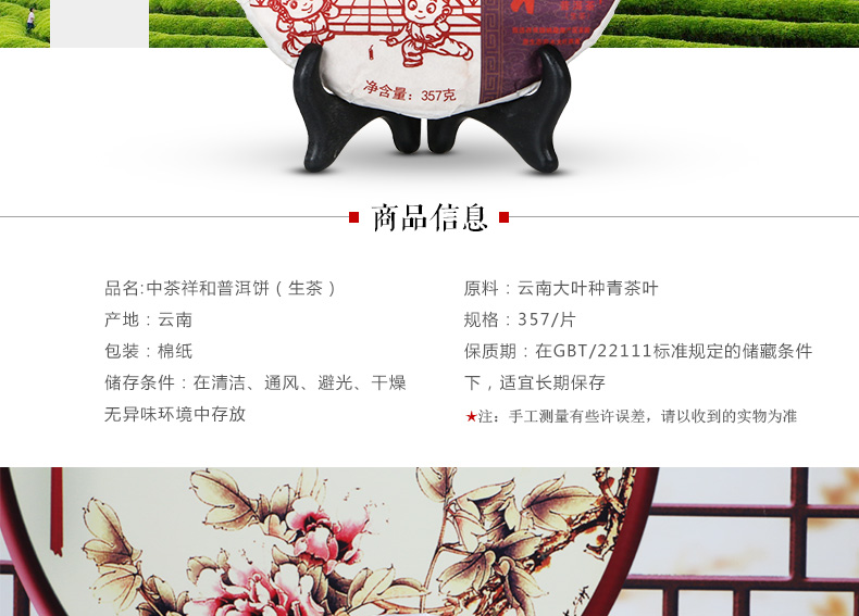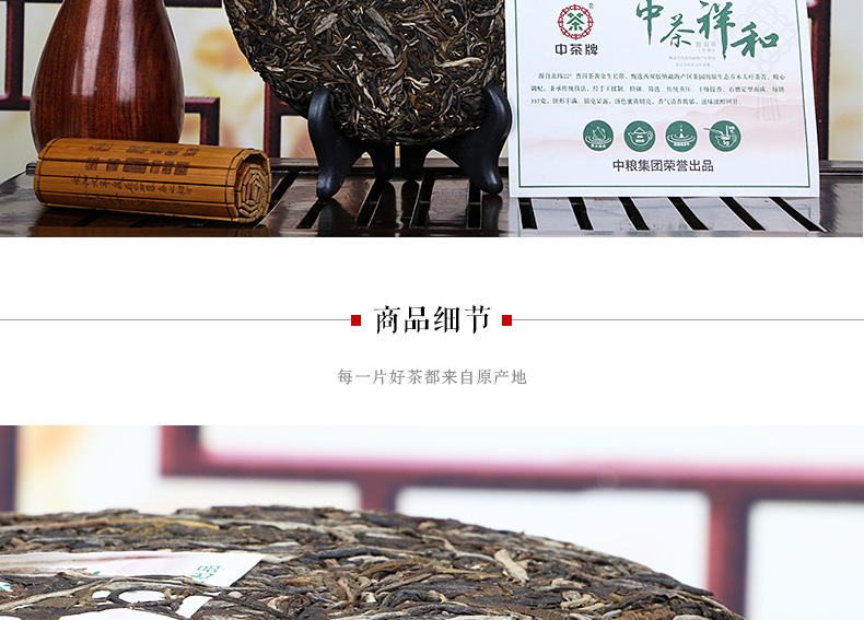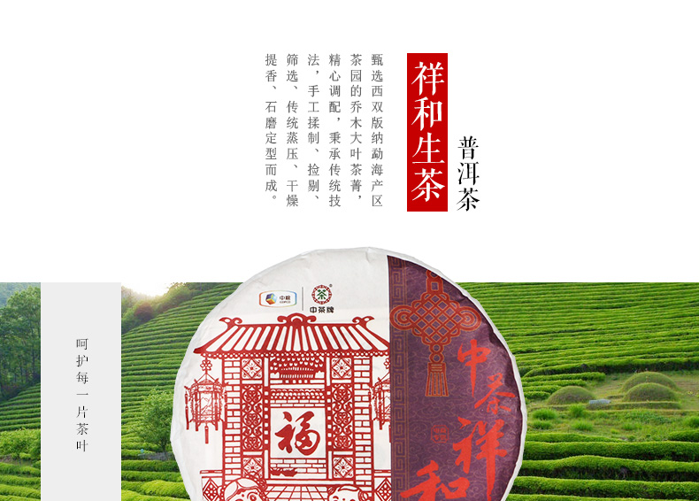 中茶 普洱茶祥和生茶357g 云南普洱茶生茶 茶叶 普洱茶饼茶 中粮
