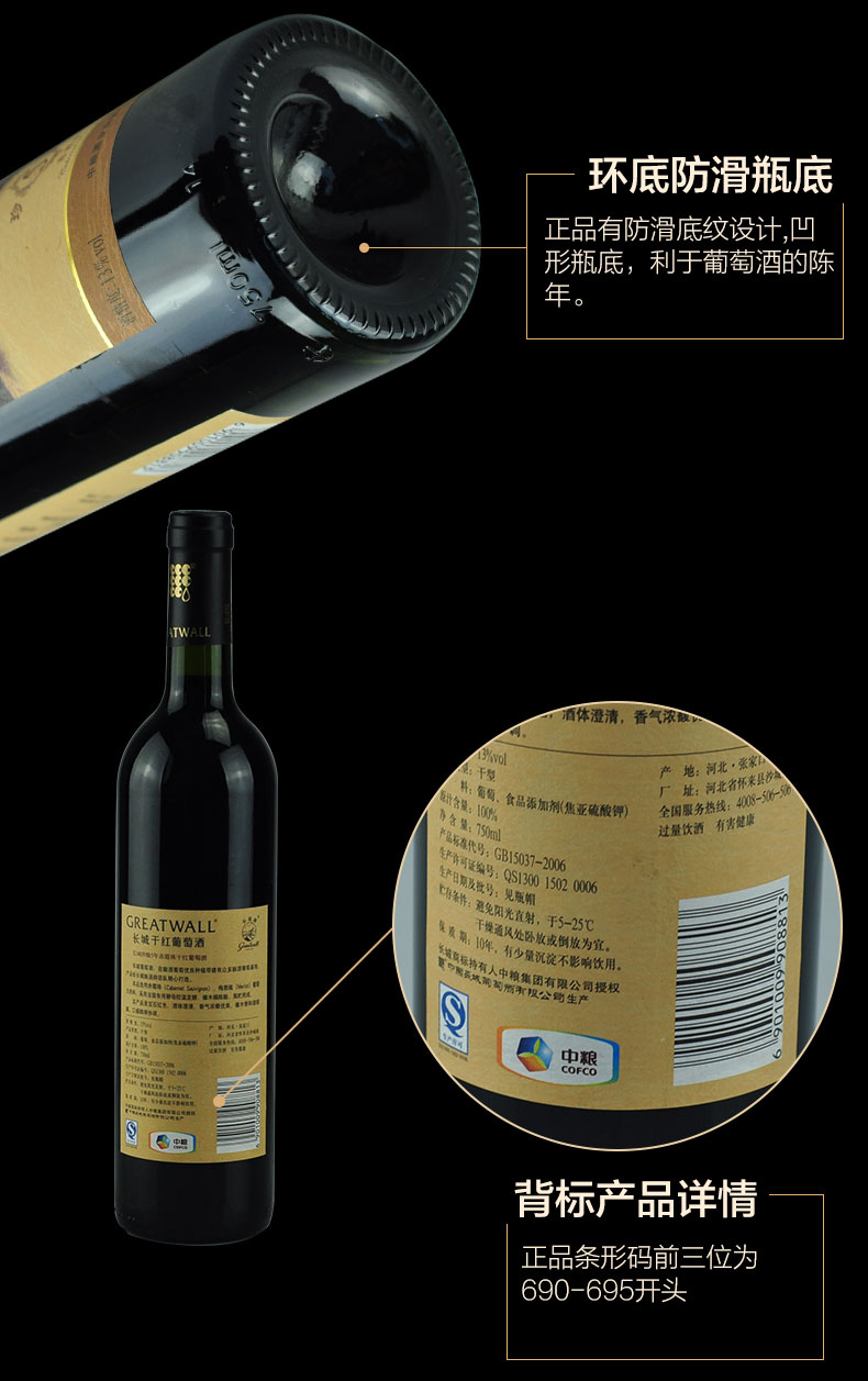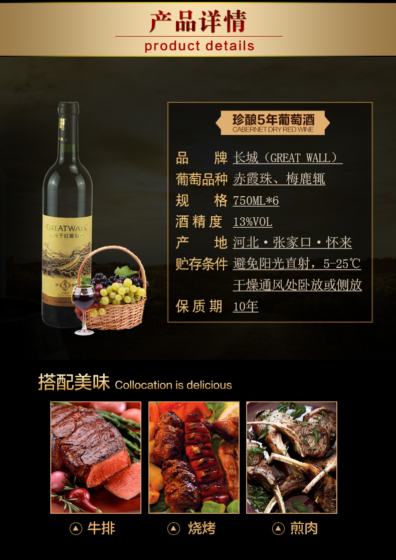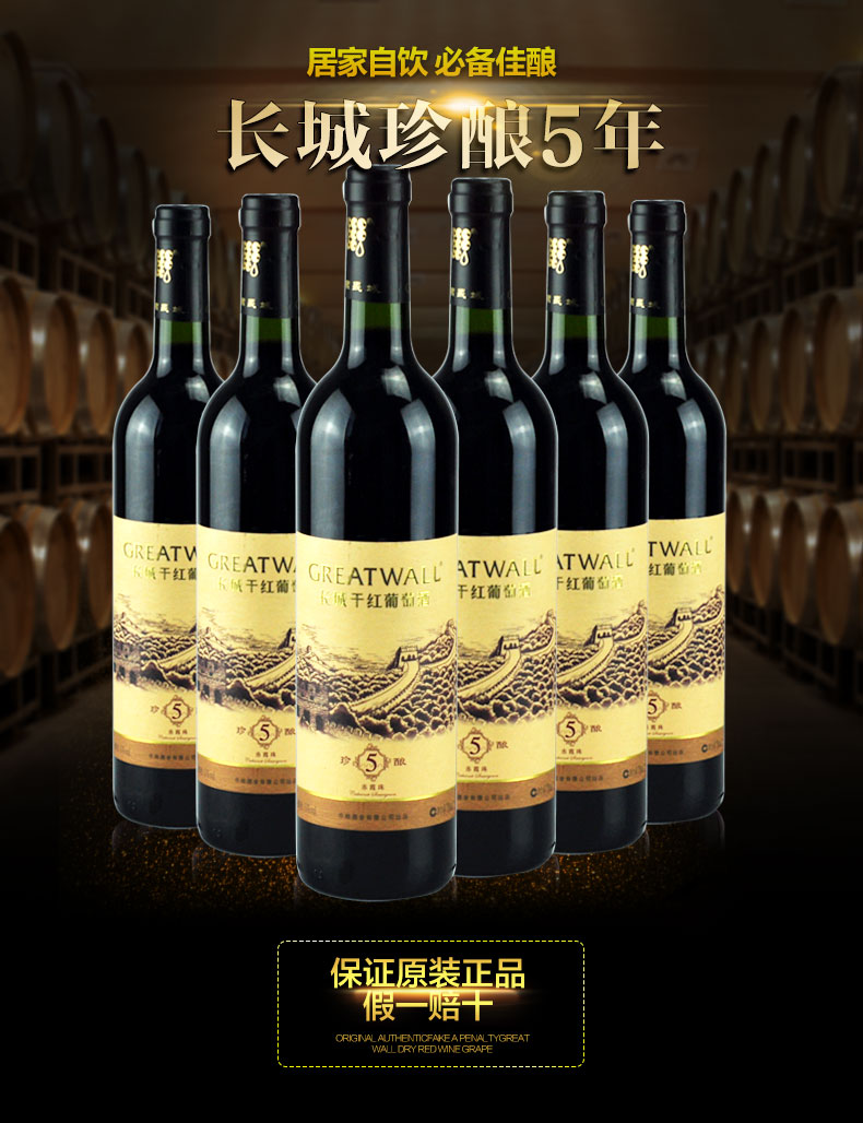 13度珍酿5年赤霞珠长城干红葡萄酒中粮国产红酒整箱6瓶*750ml