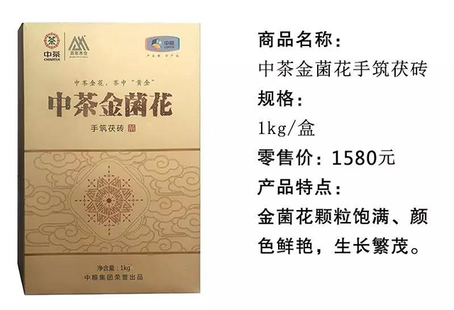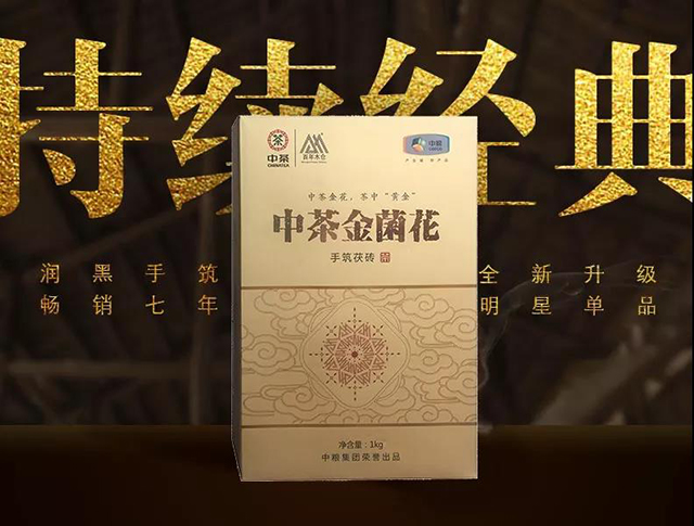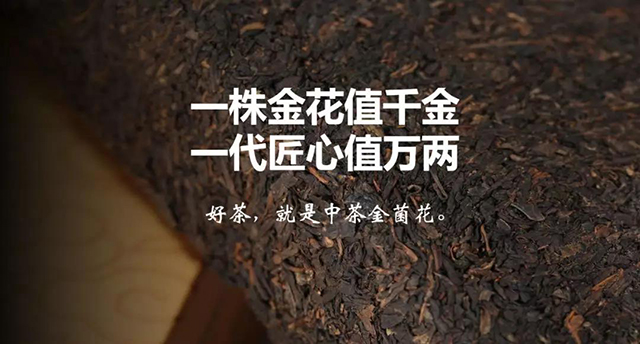 中茶金菌花在精选优质鲜嫩原料的基础上,由百年安化第一茶厂制茶匠人精准拿捏,传承传统黑茶发酵工艺,百年技艺造就其甜醇口感;经百年木仓“一仓两藏”原料、半成品二次陈化,甜香、菌香馥郁;制茶匠人纯手工筑制,砖面匀整,松紧适中,发花茂盛;入口甘甜柔和,回甘明显;汤色似红酒般红亮,叶底红褐匀整,完整度高。优良品种,优质原料,百年工艺,匠心传承,中茶金菌花在茶界的地位不言自明。所谓茶中“黄金”,金贵的不仅是原材料和产品本身,更是产品背后的故事和价值,先有湘西保靖黄金茶,“一两黄金一两茶”,今有中茶金菌花,“一株金花胜千金,一代匠心值万两”。
