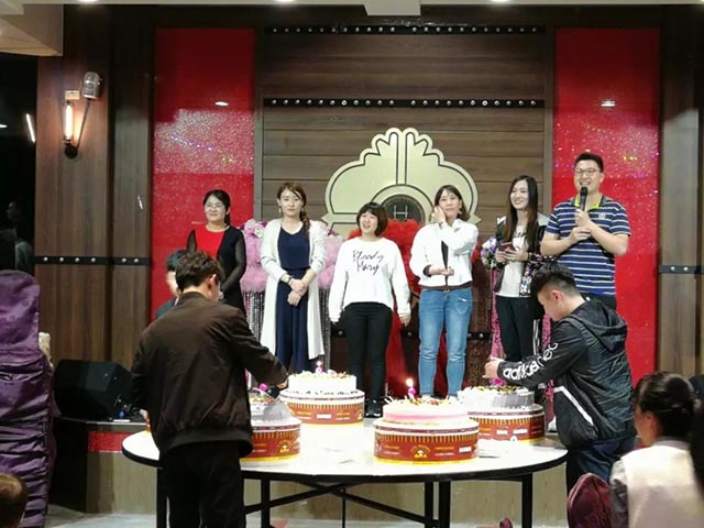 总裁办领导们为过生日的伙伴们准备了生日惊喜,张总、崔总、赵总发表了祝福讲话,在总裁办和各地市场精英祝福的环绕下,台上伙伴感动不已!