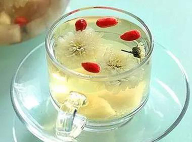 枸杞菊花茶是用菊花和枸杞同泡而成。每次用杭白菊、枸杞各10克加入大茶壶内,加入热开水,10分钟后便可饮用.枸杞对于养精益气,温热滋补有很强的功效。
