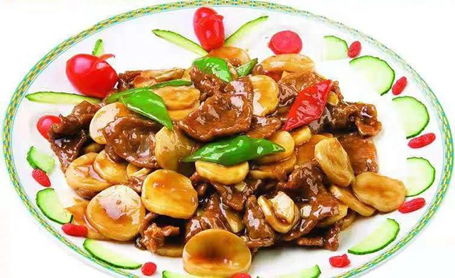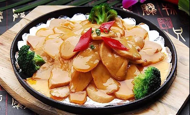 2、红烧杏鲍菇:杏鲍菇洗净,切去根部,切成厚片。黑胡椒粉、老抽、盐少许腌制十几分钟。锅中油热后,放入杏鲍菇,翻炒均匀,加适量清水,水快干时加少许水淀粉,大火收汁即可。