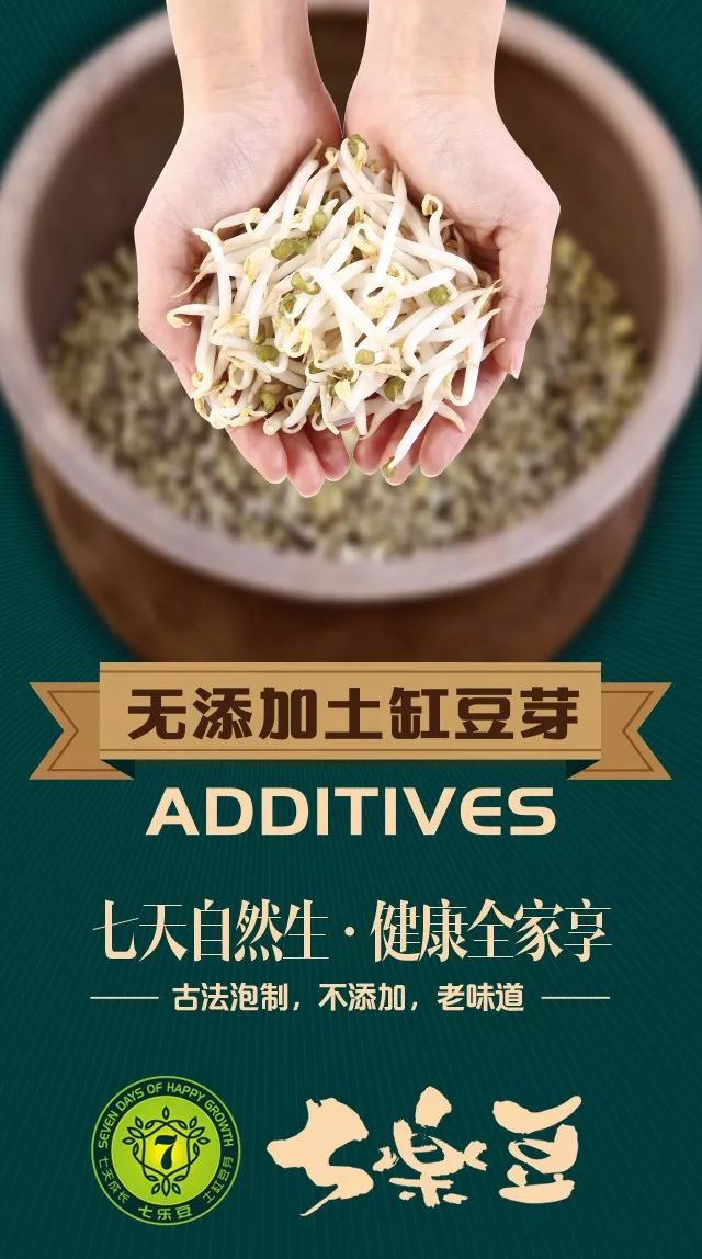 “七乐豆”土缸豆芽泡发全程只使用土缸和纯净水,在适宜的温室环境中自由快乐成长,整个舒缓的发芽过程长达7天,绝不添加任何化学制剂加速豆芽生长。