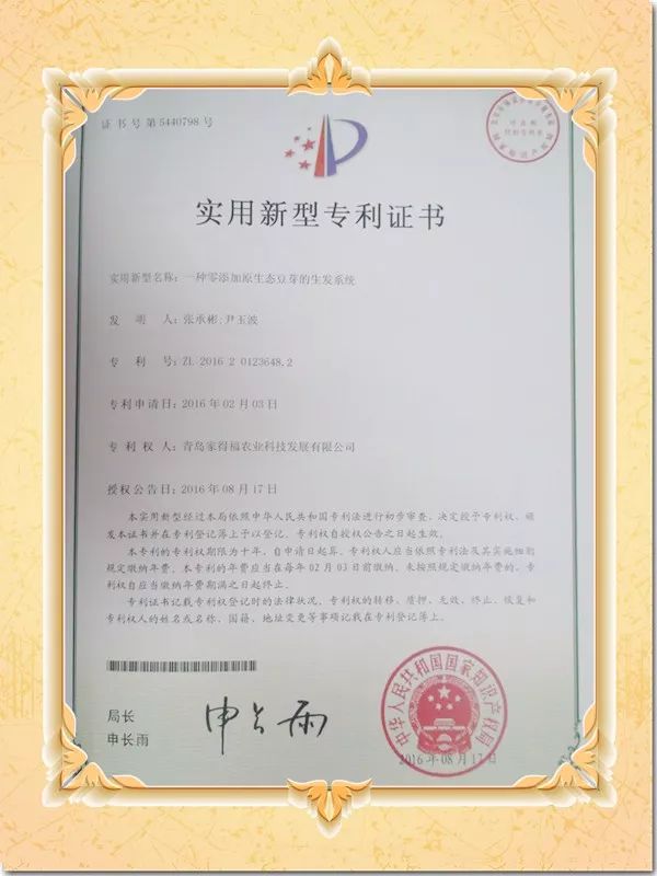 斥资千万打造土缸豆芽生产基地,占地面积2.8万平方米,自主研发零添加原生态土缸豆芽智能化生产线、生产设备翻转架、芽苗菜和食用菌的自动生发系统和下水装置,获得10余项国家知识产权局实用新型专利证书。
