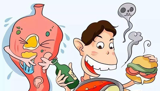 6. 晚饭吃的晚,爱吃宵夜,影响消化,胃肠得不到休息,胃黏膜不能及时修复,久而久之可能增加胃癌风险。