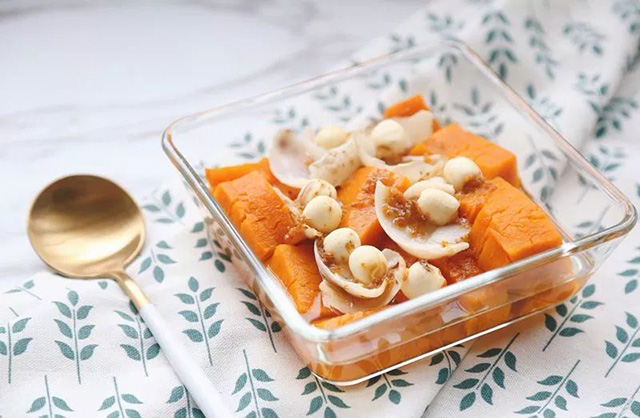 莲子10颗,百合10块,面粉150克,南瓜1大块,糖桂花3勺