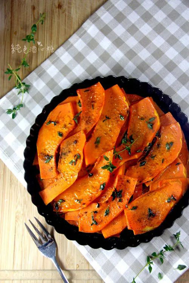 南瓜300克,百里香一小把,橄榄油10克,盐适量,黑胡椒粉适量