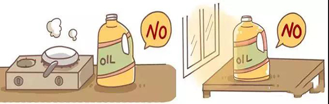 食用油最好不要放在阳光直射和高温的地方,要选阴凉、通风、干燥处,用完后及时盖上盖子。