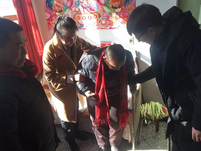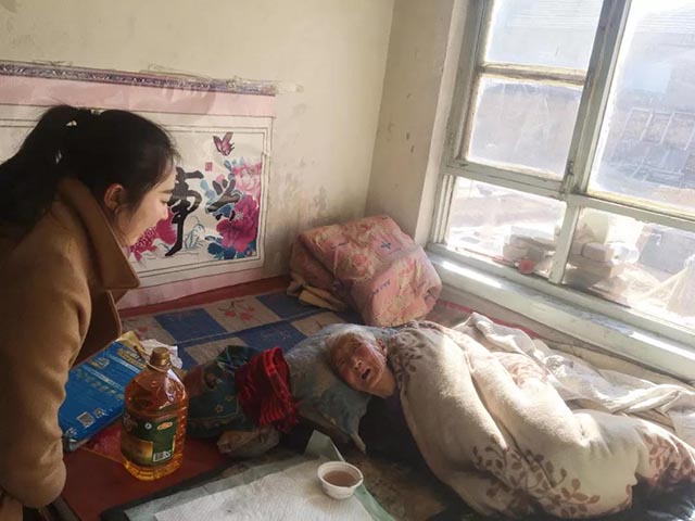 住在小辛庄村的老人今年83岁,常年卧病在床,现和三儿子居住在一起,三儿子为了照顾老母亲一直处于单身状态,现今以四十多岁了身体也不太好,没有经济来源。母子两人对于武经理和李所长一行人的到来非常感谢,老奶奶感动哭了,不停说谢谢。