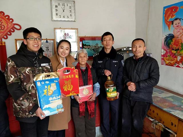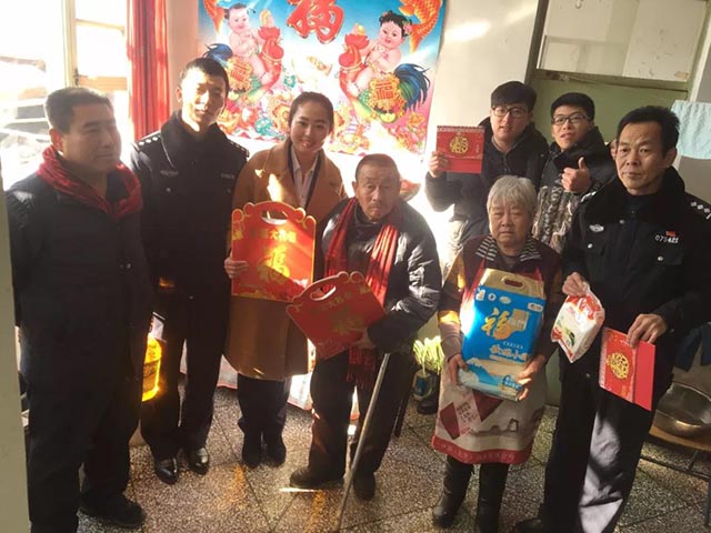 2018年2月3日上午, 中宜国粮怀来分公司总经理武晓雪与龙潭西路派出所李所长、刘警官等一行人来到沙城镇小辛庄村看望慰问困难家庭,并为他们送上了米、面、油等春节物资。村委会乔主任、张主任代表村委会对中宜国粮表示了感谢,并详细介绍了小辛庄村以及困难家庭的具体情况。