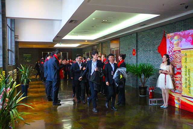 下午4点,大会正式开始,进行第一项,全体起立奏唱国歌及背诵司训,其后由各嘉宾致辞,各嘉宾分别用自己的方式,表达了对欣欣向荣的中宜国粮的支持与期待以及对朝气蓬勃的中宜国粮人的赞誉与欣赏!