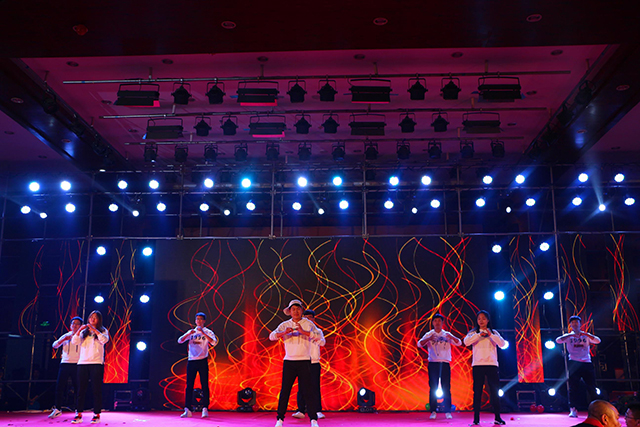 演出精彩纷呈,外请节目高端大气,员工自编自演节目不落俗套,会场流光溢彩,青春激情,自由张扬!