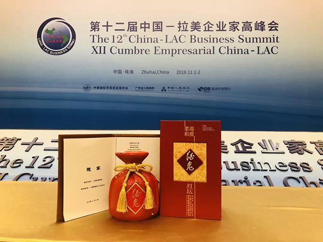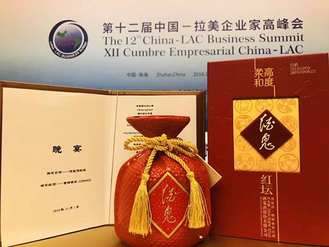 11月1日至2日,第十二届中国—拉美企业家高峰会(简称“高峰会”)在“百岛之市”广东珠海举行,双方共1700多名来自国际组织、中国和拉美及加勒比国家政府部门、商协会及企业代表出席会议。在这一个重要场合,红坛酒鬼酒作为宴会指定用酒,向拉美贵宾展现东方之韵,彰显中国独特文化内涵。