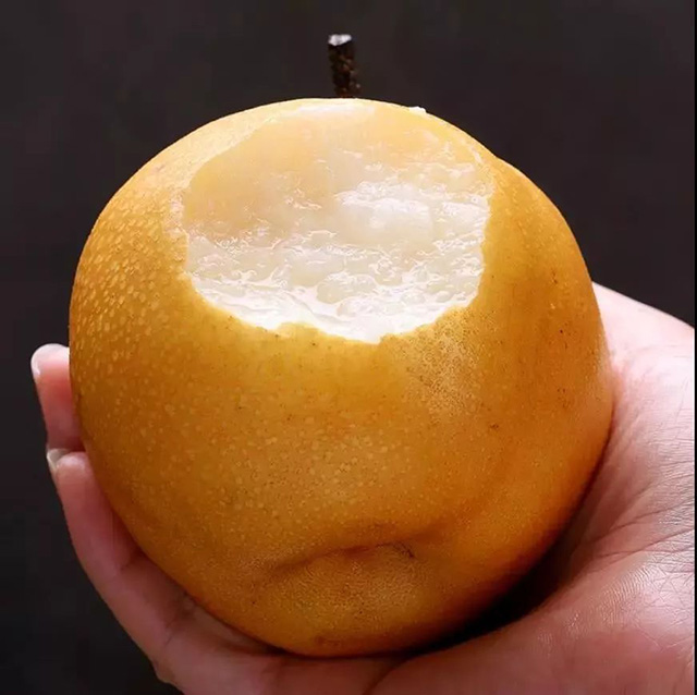 秋月梨果肉细嫩白亮,像羊脂玉一般晶莹剔透,真正是“肌肤胜雪”;口感也完全不让人失望,它是没渣的梨,刚咬两口,果肉就在嘴巴中化成甜汁了!