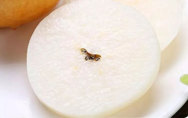 肌肤胜雪,甜嫩无渣秋月梨为什么这么好吃?两个原因:一、果肉质地细滑,吐不出任何渣。二、入口时的细脆甜蜜绝不会让你失望。
