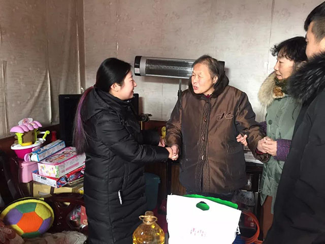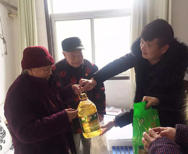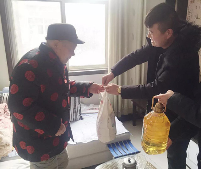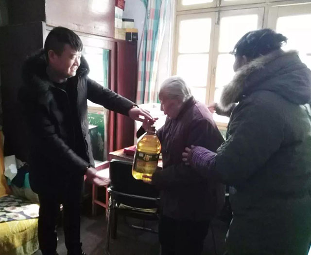 2018年1月29日下午, 中宜国粮徐州分公司后勤主任徐伟、褚杨杨经理、人事庄伟等一行人来到泉山区黄北社区,在社区主任胡主任的带领下来到黄河新村慰问困难老人,并为他们送上了过年的米、面、油等生活物资。社区胡主任代表居委会对中宜国粮表示了感谢,并热切邀请中宜国粮参与社区的楼长会。