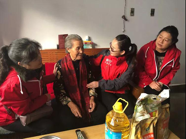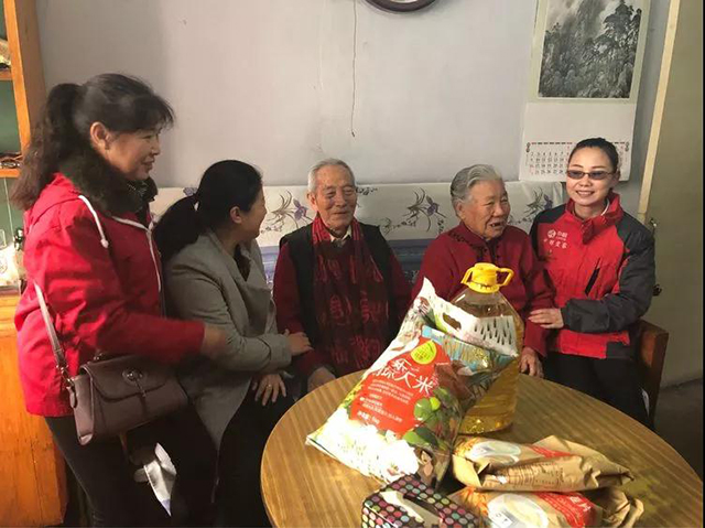 秋高气爽,金桂飘香,为大力弘扬中华民族尊老、敬老、爱老的传统美德,在重阳节即将到来之际, 中宜国粮宣化分公司大部经理戴红带领员工,在宣化环保社区领导和同志们的配合下,怀着喜悦的心情,走进百岁老人安树宣、九旬抗战老兵贾兴元和八旬孤寡老人贾荣梅家中,亲手把粮油食品、围巾等节日礼物奉送给各位老人家,表达了中宜国粮对老人们重阳佳节的深情祝福。 让老人们度过一个温馨愉快的重阳节。这是尊老爱老的真情实意,也是中宜国粮应尽的社会责任。
