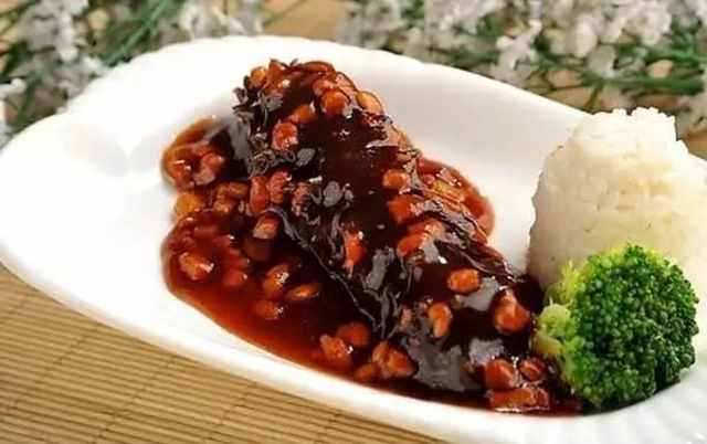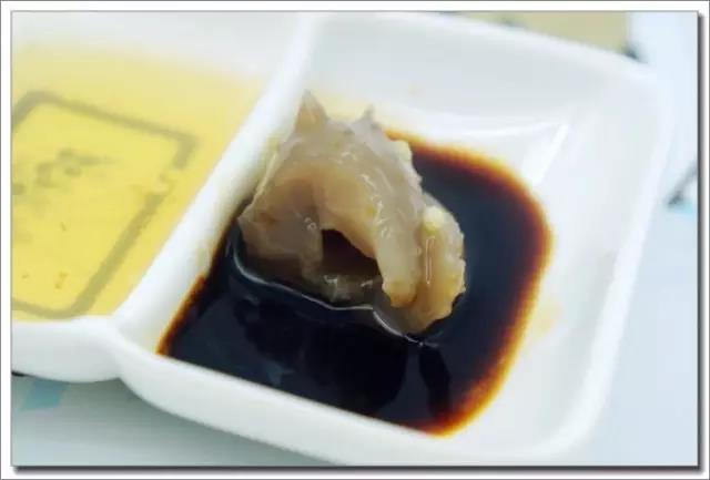 2、干海参泡发后或即食海参解冻后直接食用,蘸点生抽吃,即省事又营养,喜欢吃芥末的还可以加芥末。