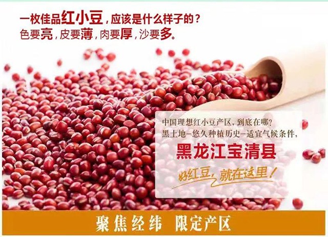 选产地:金盈红小豆,产自黑龙江宝清县,生态产地。土质肥沃,适宜的温度、湿度为红小豆提供了理想的生态环境。