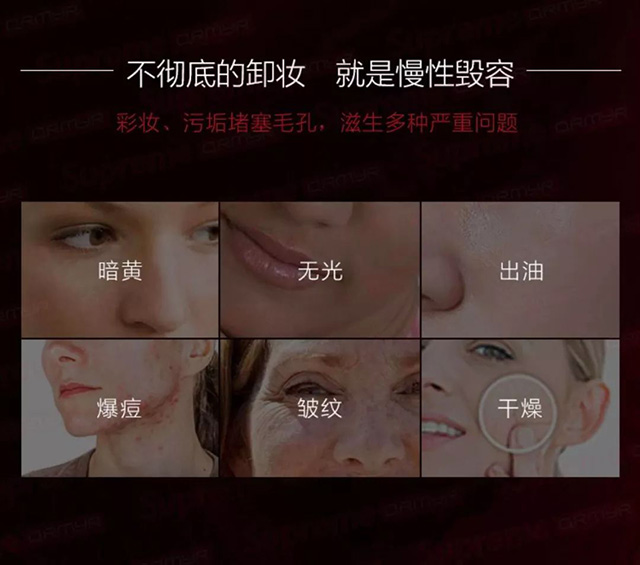 普通的卸妆水,仅仅是清理掉了表层明显的彩妆,却忽视了毛孔内的污垢。残留的污垢日积月累,使细胞呼吸渐弱,新城代谢变慢,肌肤逐渐变得毛孔粗大、肤色泛黄、干痒粗糙,还会滋生暗粒、粉刺等。