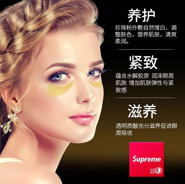 熬夜后人体正常节律被打乱.. 熬夜也成为了美丽的最大杀手. supreme黄金眼膜贴含有多效维生素,更新管理眼周肌肤、从而使眼部肌肤皮肤达到最好的状态,是众多夜精灵们的忠实选择!