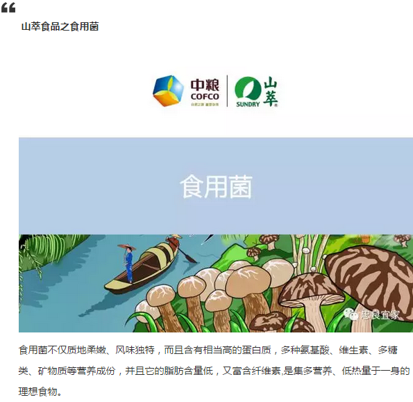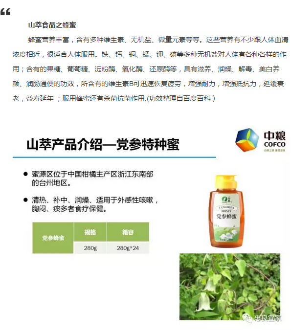 “源于山水,萃其精华”,中粮山萃是中粮集团成员企业,是天然食品品牌运营商,集天然食材供应和品牌食品销售为一体,立足中国丰富的蜂产品、菌菇海藻、木本粮谷、花草茶果等4类天然资源,严格依照标准化的绿色供应链,为消费者奉献健康、美味、便捷的天然食品。