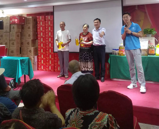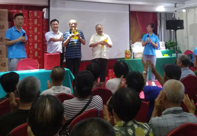 大会在隆重而庄严的国歌中开始,公司干部职工载歌载舞,老干部、老同志参与其中,既有爱情歌曲欣赏,又有职工小品调味,更有歌舞联欢《我的中国心》、《一剪梅》、《唱支山歌给党听》、《没有共产党就没有新中国》等,过程中恰如其分的安排了抽奖关节,使整个联欢会气氛非凡,其乐融融,最后分公司总经理郑志军同志致辞,给与会的各位老干部发放了月饼、中粮黄酒等节日的慰问品!