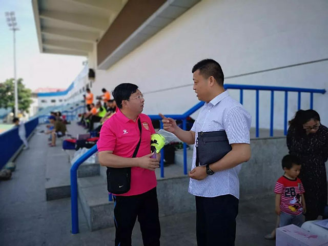 6月3日, 2018赛季烟甲联赛打响第二轮,5场比赛共打进23球,着实让人没想到。同一天,烟乙联赛也战罢第十轮, 中宜国粮副总裁刘平刘总带来了亲切的慰问,与中宜国粮荣根足球队队长王文惠热烈交谈。