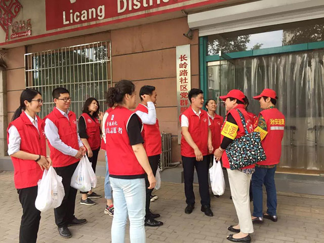 上合组织青岛峰会召开在即,志愿者也成为这座城市亮丽暖心的风景。他们身穿“志愿者”小红衣,维护社区良好的治安秩序, 积极开展义务巡逻活动。此次慰问,李沧分公司带去了象征长寿的香雪面条、消渴解暑的冰露水以及三年原酿的孔乙己黄酒 ,献给美丽而又可敬的志愿者们。
