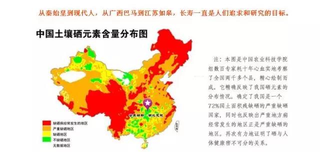 硒是人体必需的微量元素。中国营养学会也将硒列为人体必需的15种营养素之一,国内外大量临床实验明,人体缺硒可引起某些重要器官的功能失调,导致许多严重疾病发生,全世界40多个国家处于缺硒地区,中国22个省份的几亿人口都处于缺硒或低硒地带,这些地区的人口肿瘤、肝病、心血管疾病等发病率很高。