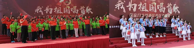 活动现场义工团队身着红马甲,精神饱满,站队井然有序,在浓厚的节日氛围中,人们手持红旗,将对祖国的热爱灌注到歌曲《歌唱祖国》中,唱响歌声嘹亮!