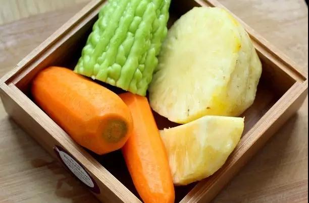 凤梨+西兰花根+橙子+小胡萝卜+卷心菜芯