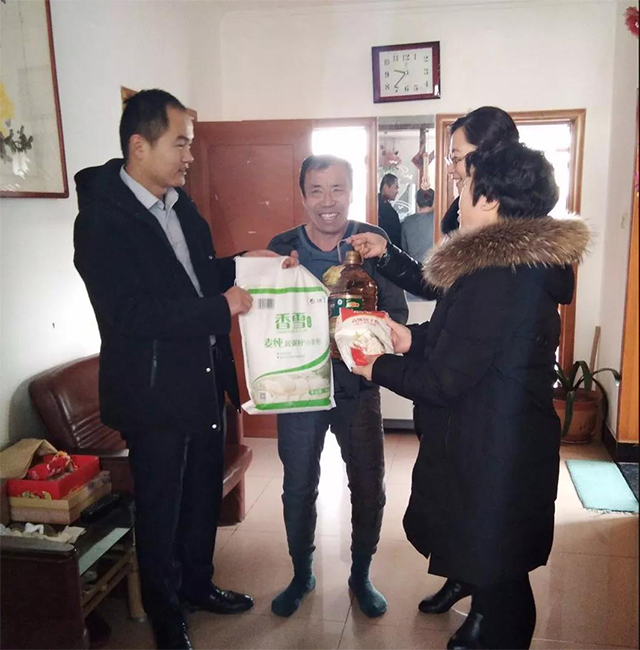1 月15日,中宜国粮威海分公司仝副总带领干部职工, 在杏花村社区居委会主任带领下,看望了社区退伍老兵、残疾人家庭、低保户等困难群众,并为他们送去了福临门玉米油、香雪饺子粉 、富强粉等生活物资, 希望困难群众过个好年。